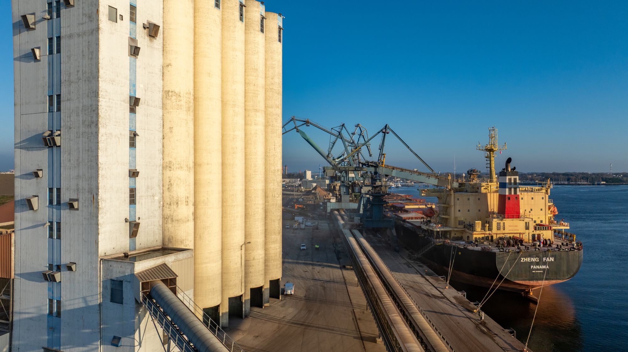- Installations Panamax dédiées vrac agroalimentaire, pour des navires jusqu’à 230 m, avec un tirant d’eau jusqu’à 12,50 m, 2 portiques de déchargement dédiés.